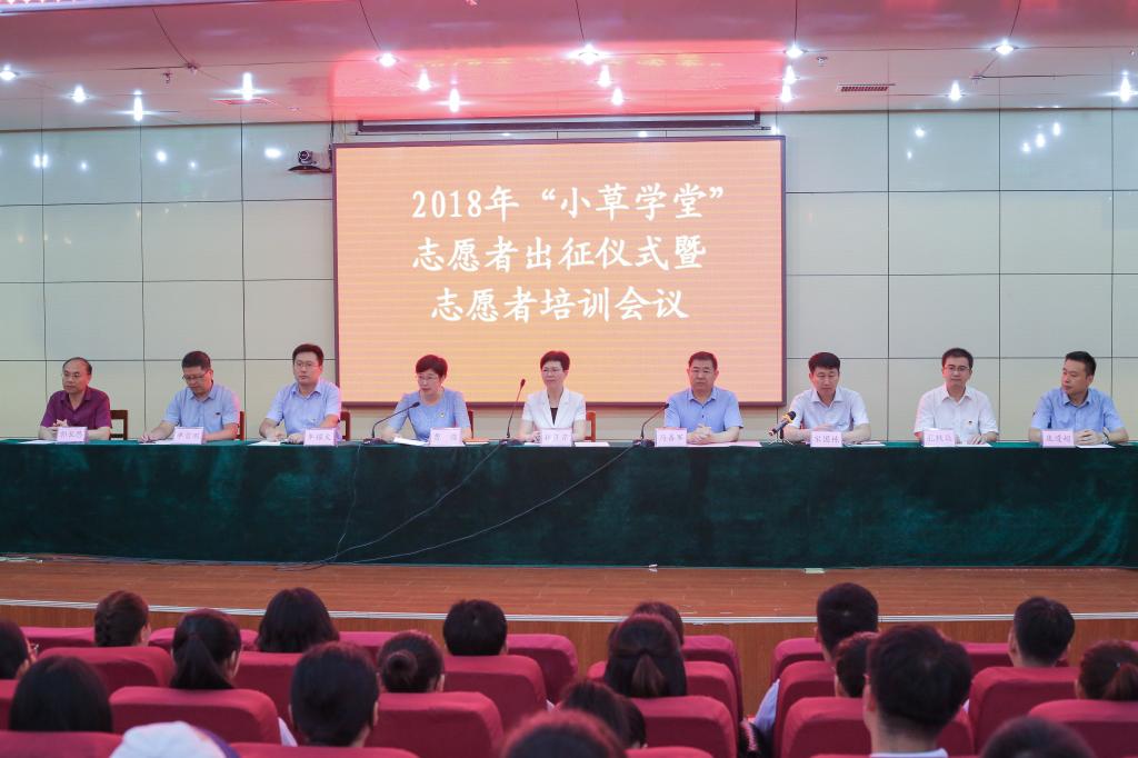 7月16日上午,我校2018年“小草学堂”志愿者出征仪式暨志愿者培训活动举行。我校党委副书记马善军、日照市政府副市长林彦芹出席活动,学校团委、日照团市委、日照市图书馆负责人、日照市各区县团委、“小草学堂”支教点代表、爱心企业以及300余名学生志愿者参加了活动。