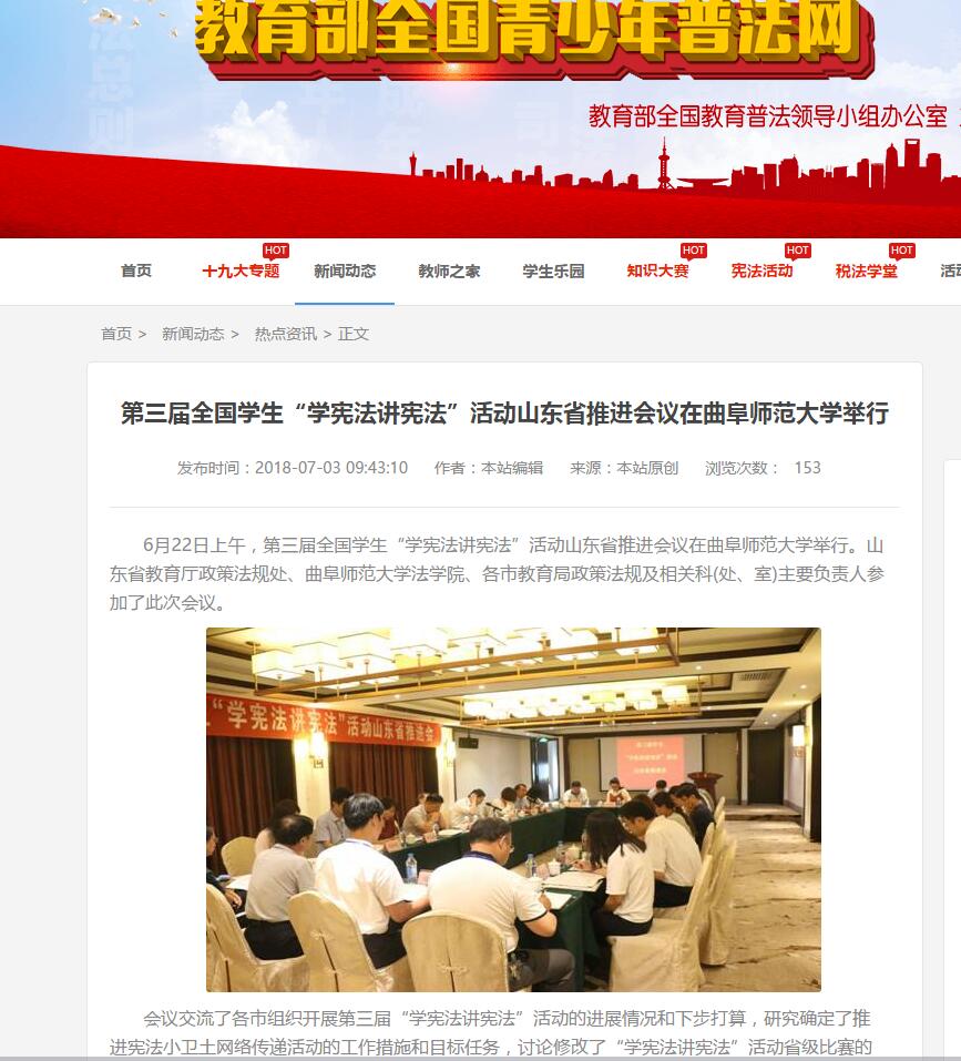 教育部普法网:第三届全国学生“学宪法讲宪法”活动山东省推进会议在365bet体育在线平台举行
